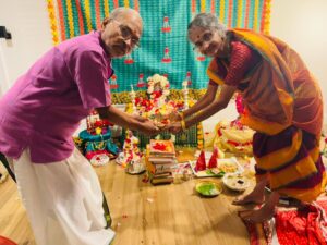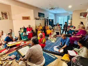 A young and vibrant couple, joyfully marking five decades of their successful married life, chose to commemorate the occasion with the Srimad Bhagavatam Dasama Skandha (10th Canto) Parayanam and Pravachanam at their home in Westford over the weekend of September 13th and 14th.