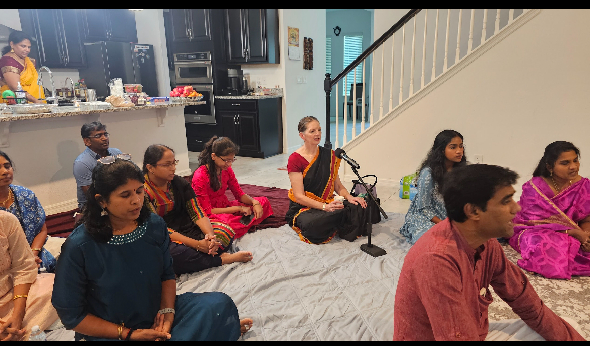 The satsang was hosted at the residence of Tirupathi ji and Lalitha ji and about 60 devotees joined in the blissful chanting of the divine Mahamantra in various melodious tunes.