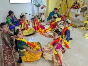By the grace of Sri Swamiji and Sri Aishwarya Srinivasa Perumal, devotees celebrated the divine wedding of Sri Andal with Sri Krishna on the auspicious culmination of the divine Margasheersha month, on Jan 17 2026. The event started with Bharatanatyam offering by Kum. Aishwarya Srinivasan. She performed Vaaranamaayiram pasuram of Sri Andal and several Madhurageethams of HH Maharanyam Sri Sri Muralidhara Swamiji.