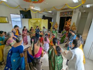 Andal Kalyanam started with singing of sampradaya bhajans and Divyanama Sankirtanam,culminating with Mangalya Dharanam and Harathi. Lunch prasadam was provided to all devotees. About 80 people attended the event.