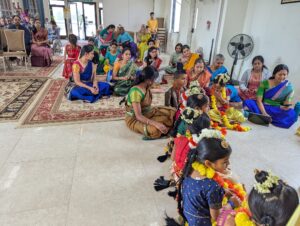 By the grace of Sri Swamiji and Sri Aishwarya Srinivasa Perumal, devotees celebrated the divine wedding of Sri Andal with Sri Krishna on the auspicious culmination of the divine Margasheersha month, on Jan 17 2026. The event started with Bharatanatyam offering by Kum. Aishwarya Srinivasan. She performed Vaaranamaayiram pasuram of Sri Andal and several Madhurageethams of HH Maharanyam Sri Sri Muralidhara Swamiji.