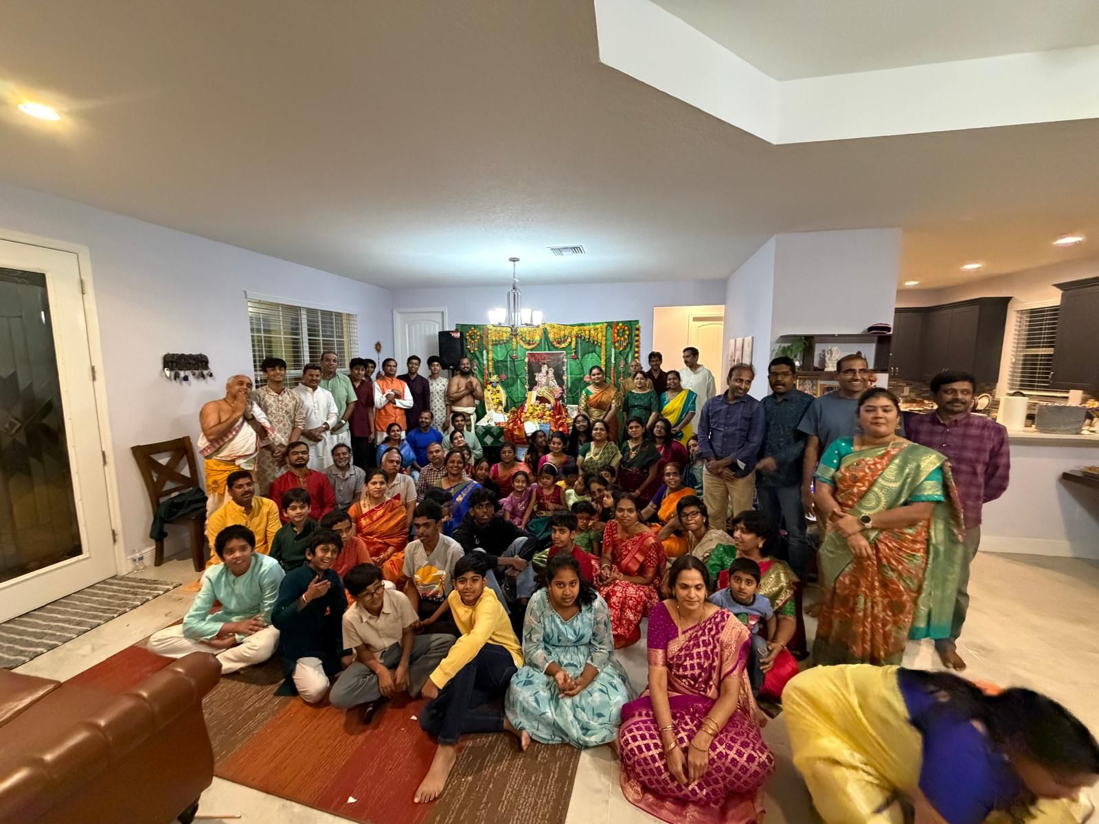 We ushered in the New Year under the immense grace of Guruji and Madhuri Saki Samedha Thakurji with a grand Radha kalyanam. Held at a devotee’s farmhouse, the setting was truly a “Modern Vrindavan,” surrounded by lush farmland, cows, and chickens. The atmosphere was so vibrant that the Radha Kalyanam felt as though it were taking place in the holy land of Vraja itself. Over 80 devotees joined the festivities, filling the air with blissful energy and eager participation in the Divyanamam.
