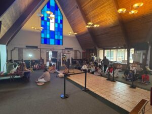 The satsang was blessed with a large gathering of around 65 devotees, all listening with deep reverence.