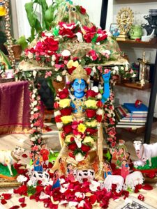 By the benign grace of Sri Swamiij and Madhuri Sakhi Sametha Premika Varada Takurji, a blissful Gopashtami Satsang was celebrated at the residence of Smt. Chitra and Sri Bala ji.