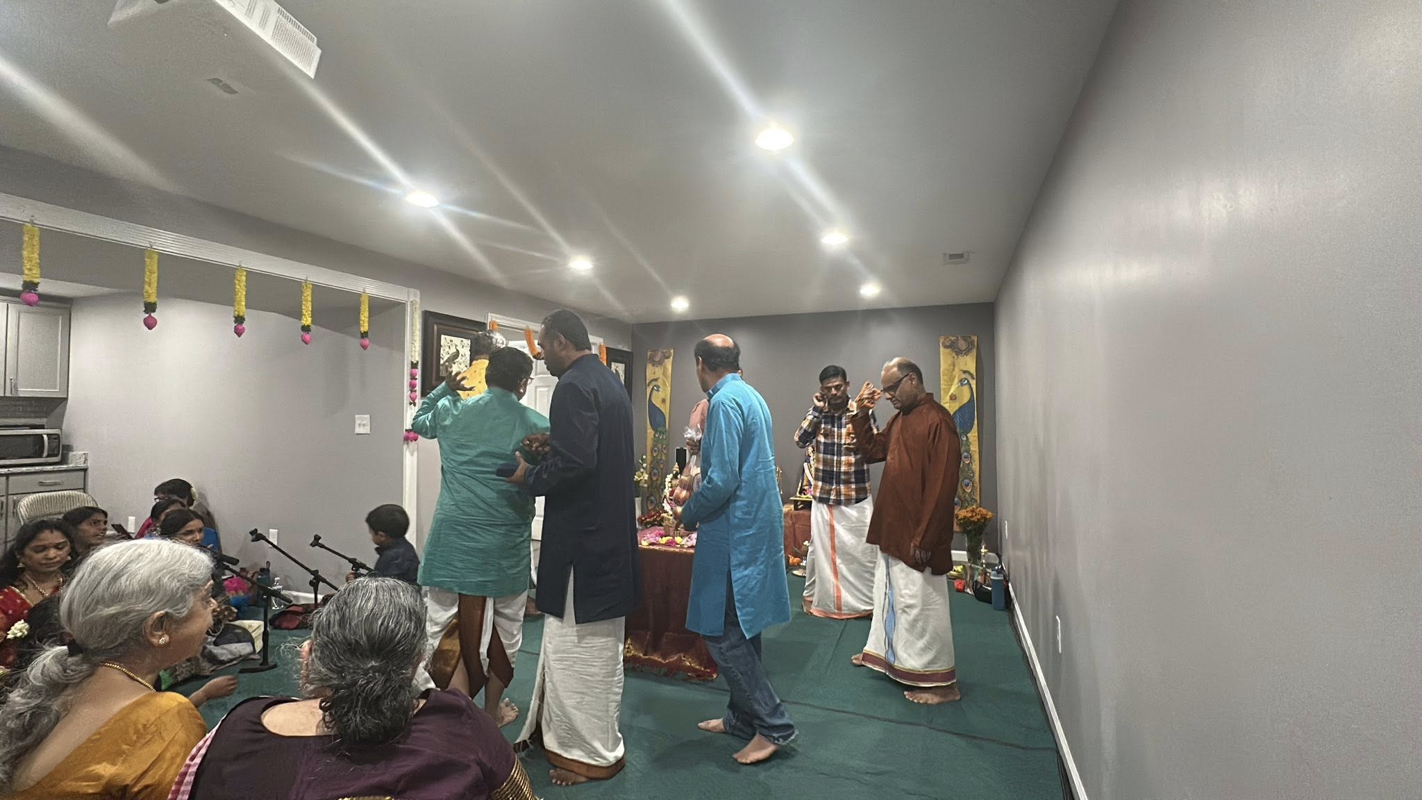 In celebration of the hosts’ son’s birthday, Sri MuraliJi did a beautiful pravachan on “Nama Mahima”, followed by Prayer Nama and Anjaneya Kirtan.