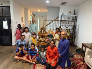 The event was lovingly hosted at the home of Sri Krishna ji and Smt. Radhika ji. The setting was tastefully and thoughtfully decorated, enhancing the sanctity of the occasion. Devotees from Orlando lovingly prepared a variety of delicious offerings and an elaborate seer for the divine wedding. We were delighted to have over 100 devotees join in this auspicious celebration.