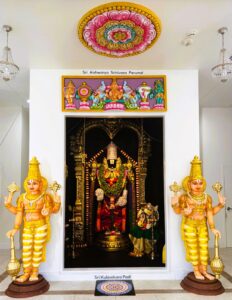 By the divine grace of Bhagavan and Sri Swamiji, and sincere efforts of donors, volunteers, and workers, the newly renovated abode of Sri Aishwarya Srinivasa Perumal was opened to devotees on the auspicious first Purattaasi Saturday, Sep 20, 2025. The renovations included a new Raja Gopuram (Raj Mahadwaar) resplendent with Perumal, Anjaneyar and Garudazhwar shining brilliantly atop. Dwarapalakas Jaya and Vijaya also took their place inside, welcoming devotees to our Srinivasa Perumal’s divine abode. The interiors of the temple were upgraded with traditional panels. As part of the renovation, the temple also added four new traditional vahanams that were made in India – Garuda, Kudirai, Yaanai and Sesha vahanams.