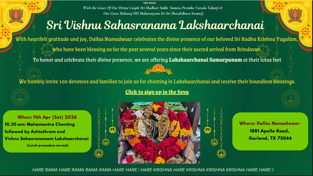 - Dallas G.O.D. February 2026 Events: Krishnaji Ka Khela & Namadwaar Anniversary Celebrations
